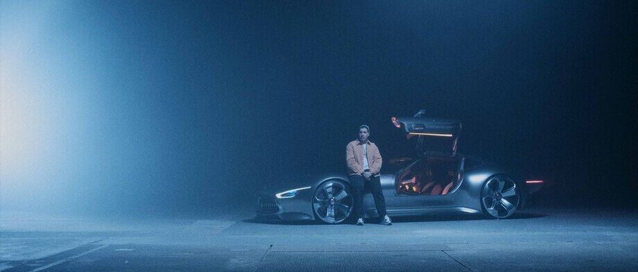 The artist once again gives an impression of his versatility with this project. Not only the beat suddenly changes in the middle of the song, but also does the scenery in the music video. It starts with a champagne party in an Asian restaurant, while in the second part RIN shows up with the Mercedes-Benz VGT at a video shoot in an industrial hall.